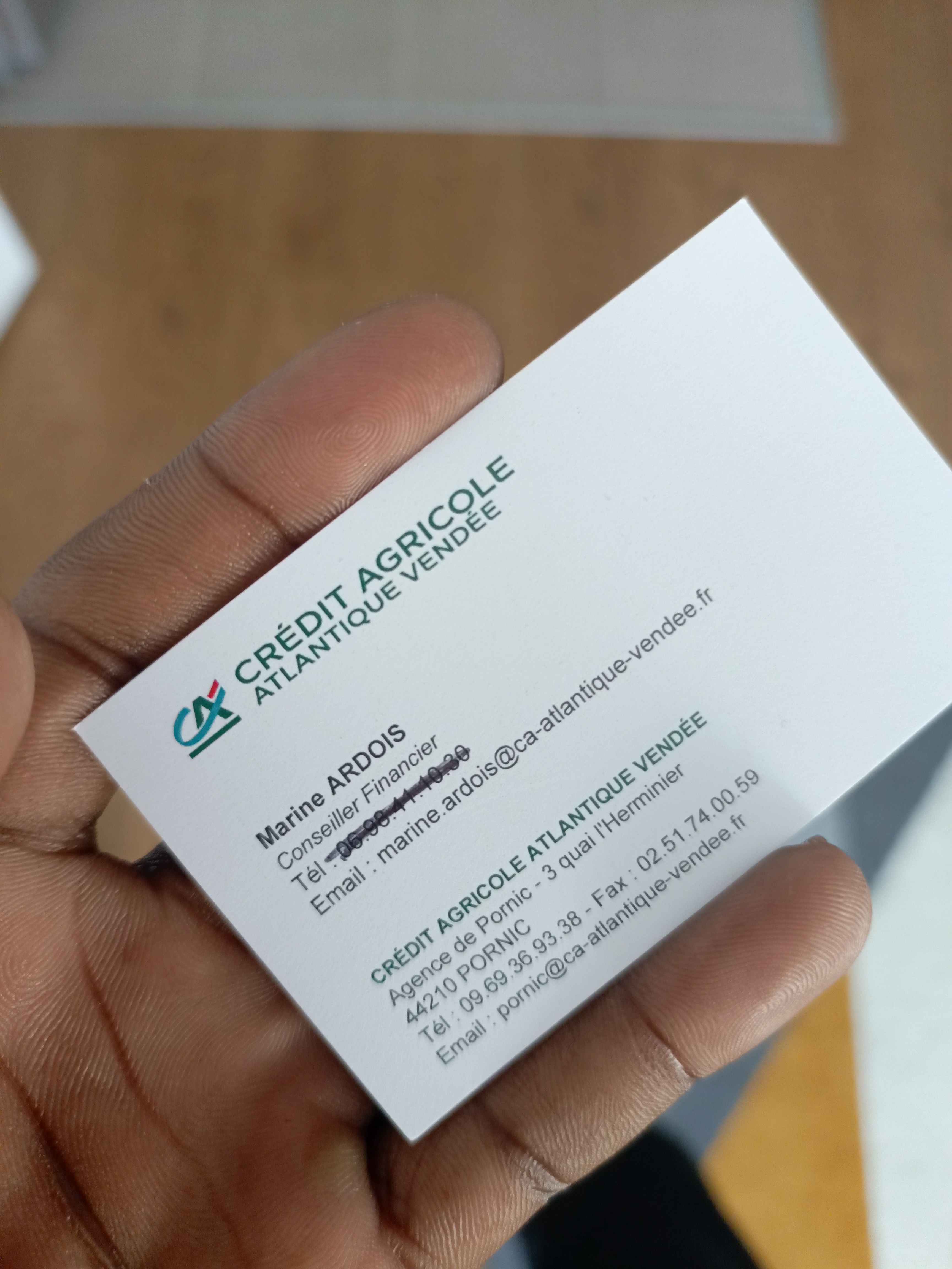 Bonjour, je suis très rassurée de l'abonnement auprès de Crédit agricole et ses services. Dont j'ai eu l'occasion d'apprécier par votre canal, je cite Marine Ardois conseillère clientèle à Pornic. J'espère que je pourrais vous avoir a titrée pour mon accompagnement. J'ai rarement vu une dévotion dans le travail comme vous. Et au déjà des services vendus, vous avez su nous accordez avec mon épouse qui se joint à cet avis, la sympathie, le conseil et surtout l'amour qui n'est souvent pas évident quand on doit rester professionnel. Vraiment merci!